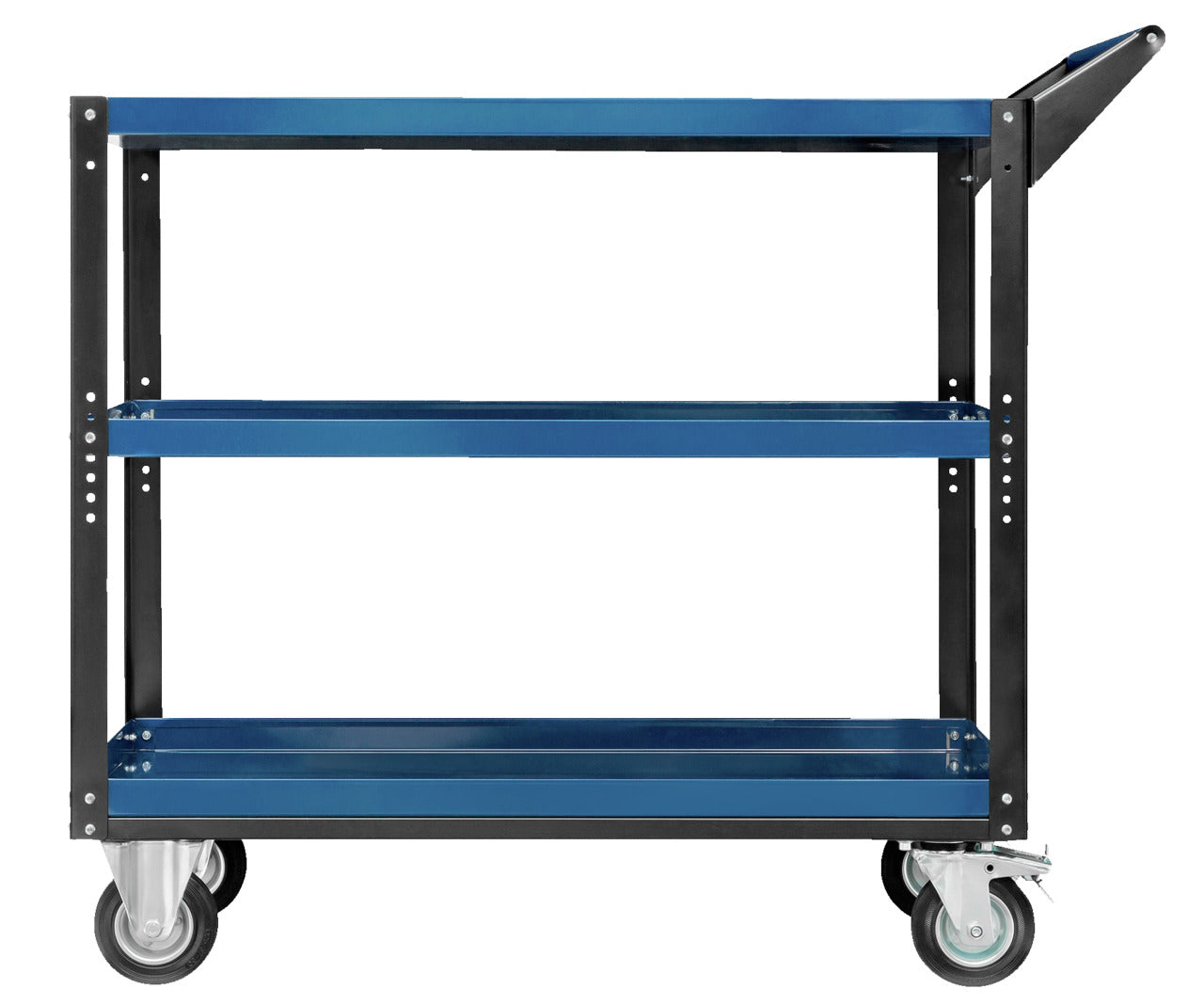 Dissenyat per brindar mobilitat i accessibilitat, el Carro de Servei 1530 garanteix un transport segur i un accés ràpid als seus materials dipositats. Les safates superiors tenen una capacitat de càrrega de 50 kg cadascuna, mentre que la safata inferior pot carregar fins a 100 kg. A més, la safata intermèdia, ajustable en alçada, ofereix la flexibilitat de col·locar-se en set altures diferents.