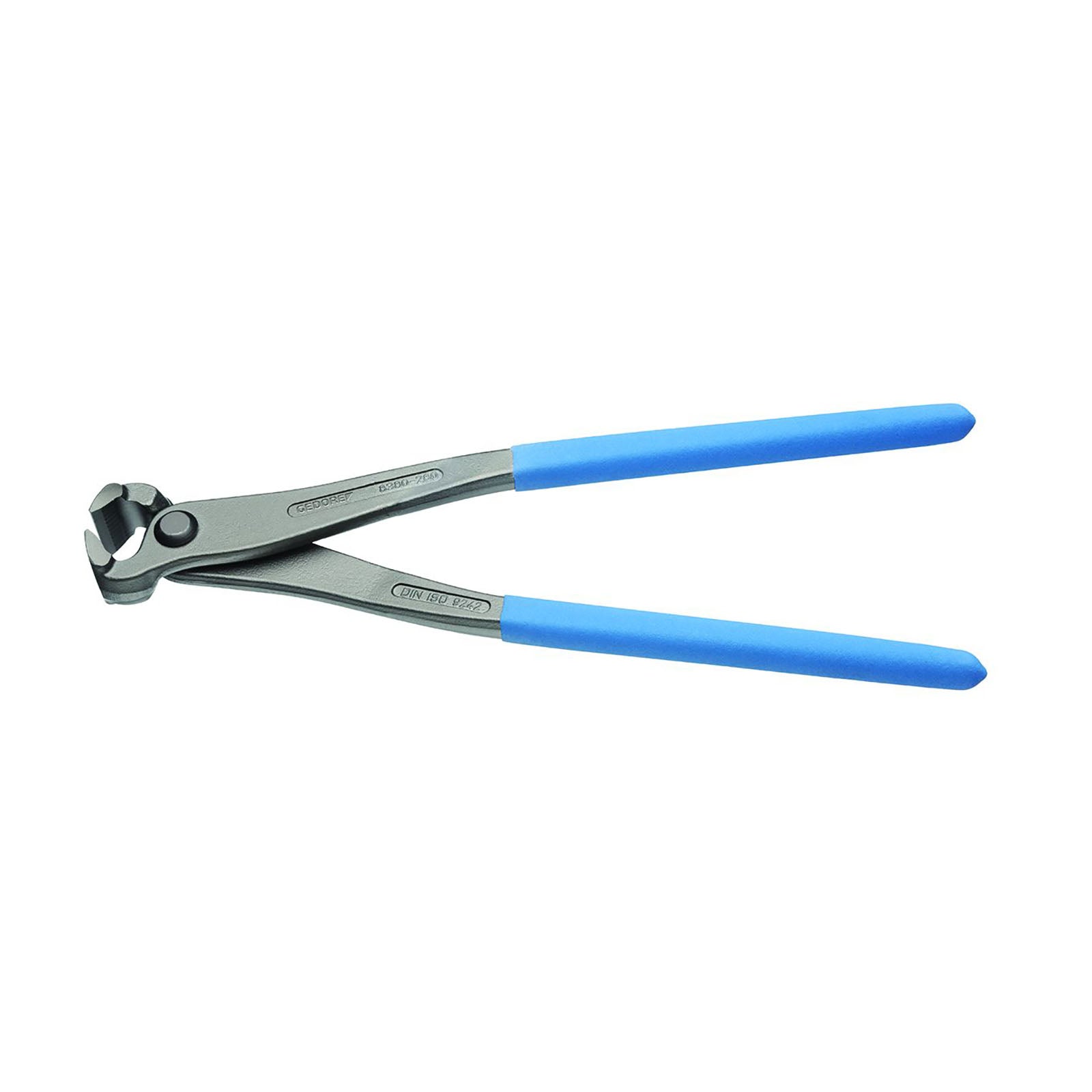 Execució segons DIN ISO 9242 forma A, Rabitz o alicates de trenar per a les aplicacions més difícils, Fils de precisió temperats per inducció, duresa 61 - 63 HRC, Per filferro semidur 1,6 mm, Caps polits, gris acer, amb mànecs antilliscants submergits en blau (TL), Fàcil accés gràcies a l'optimització geomètrica de l'àrea del cap i les cames, Fet d'acer de qualitat per a eines