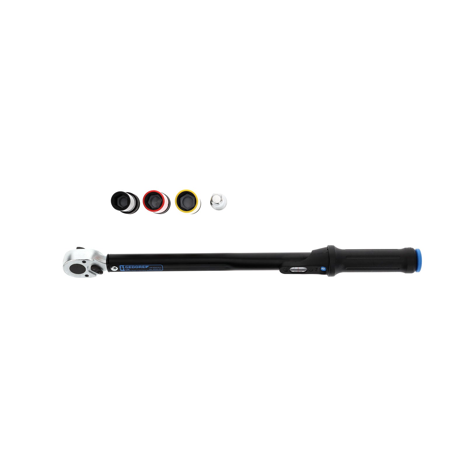 - Práctico juego de llave dinamométrica 1/2" compuesto de una llave dinamométrica y accesorios (3 vasos largos con casquillo de protección 17, 19, 21 mm) y alargadera 1990-5 de 5 pulgadas.