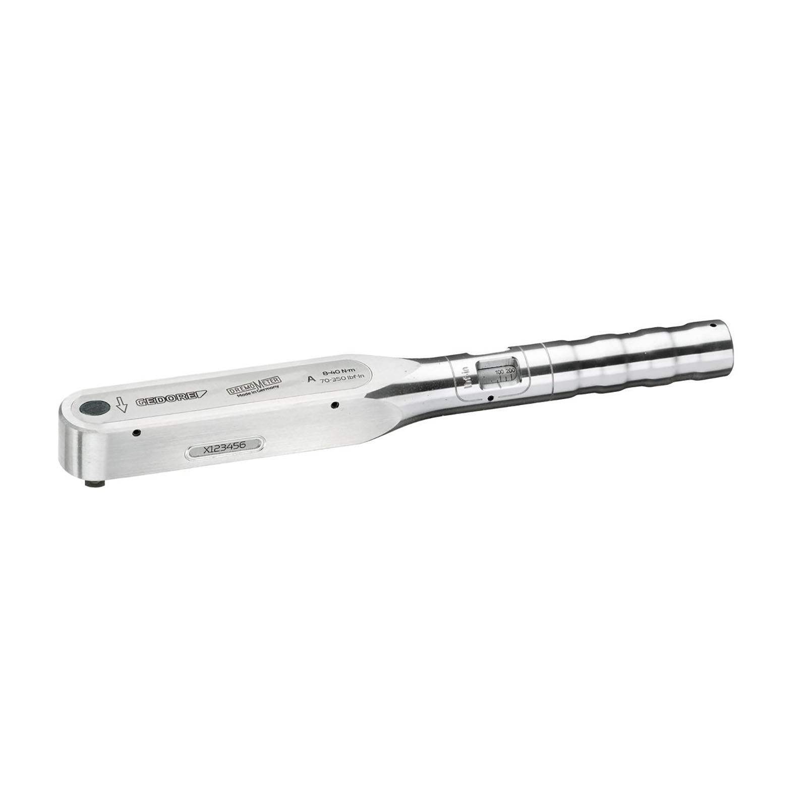 Ventaja/función técnica: El bloqueo y seguro (A+S) excluye un reajuste por descuido o manipulado, lo que significa una mayor seguridad de proceso para el usuario Clasificado según DIN EN ISO 6789:2003 Tipo II Clase A con un certificado de fábrica. Precisión de desencadenamiento: +/- 3 % sobre el valor ajustado en la escala superando así la prescripción de la norma (+/- 4 %). Ligera y robusta (ya que la carcasa está fabricada de una aleación de aluminio), muy adecuada para talleres No se producen desplazamientos de valores ni se afecta a la precisión debido al trabajo con las dos manos o al accionar fuera del mango (como ocurre en las llaves dinamométricas tradicionales). Tanto el cuadradillo de accionamiento como el centro de rotación se encuentran en un eje, con lo que se eleva la seguridad de empleo, prolongable para reducir la carga de trabajo del usuario. Desgaste extremadamente reducido gracias a la reducción de fuerzas en una singular mecánica de palanca El mecanismo interno está formado por un juego de palancas forjadas por el Grupo GEDORE Máxima precisión incluso con un intenso uso permanente Larga duración y elevados tiempos de vida útil Manejo sencillo - apriete del par de apriete más rápido y seguro Cuadradillo simple y doble para el apriete controlado a izquierda y derecha Aplicación: Apriete de tornillo controlado en el rango de 6-3000 N·m Aplicación en todos los ámbitos de fabricación industrial Ejecución: Con certificado según DIN EN ISO 6789, derivable a través del laboratorio ENAC propio de la empresa a las normas nacionales supeditadas Señal automática de desencadenamiento de recorrido corto perceptible y audible Escala doble con la correspondiente división de la escala (ver tabla) Tipo B, BC, C con botón de desbloqueo DREMOMETER ajustado fijo para la fabricación en serie, allí donde siempre se tiene que apretar el mismo valor